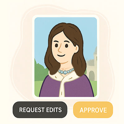 In 1-3 days we will send your portrait for approval. Preview, approve, or ask for edits.