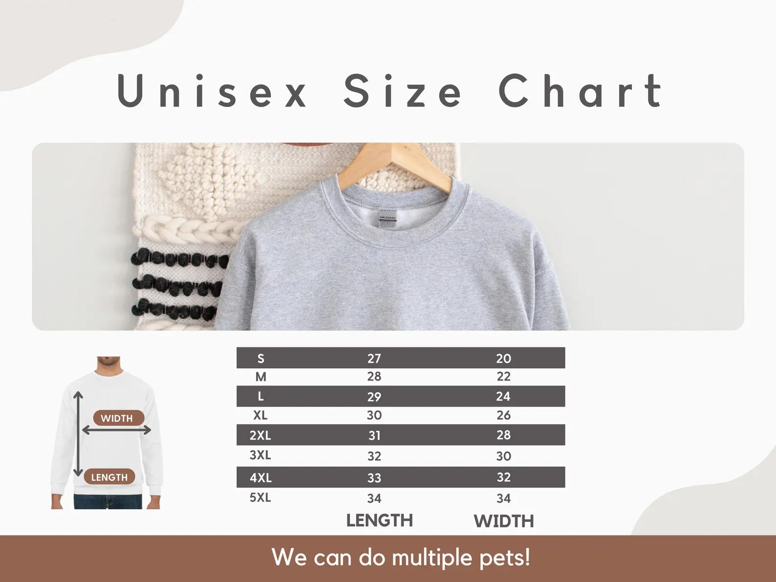 Collection of sweatshirts with pet names and illustrations, shown in various colors.