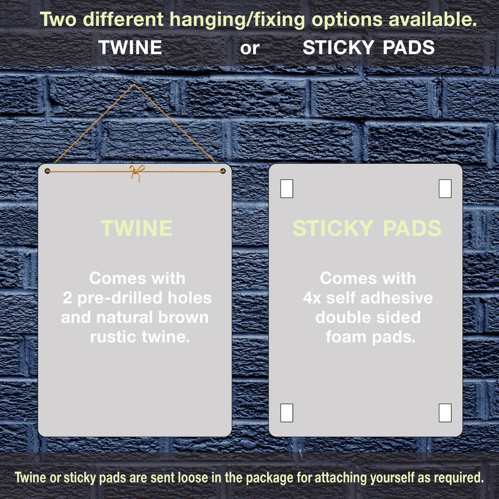 Hanging: Pre-drilled holes / rope included