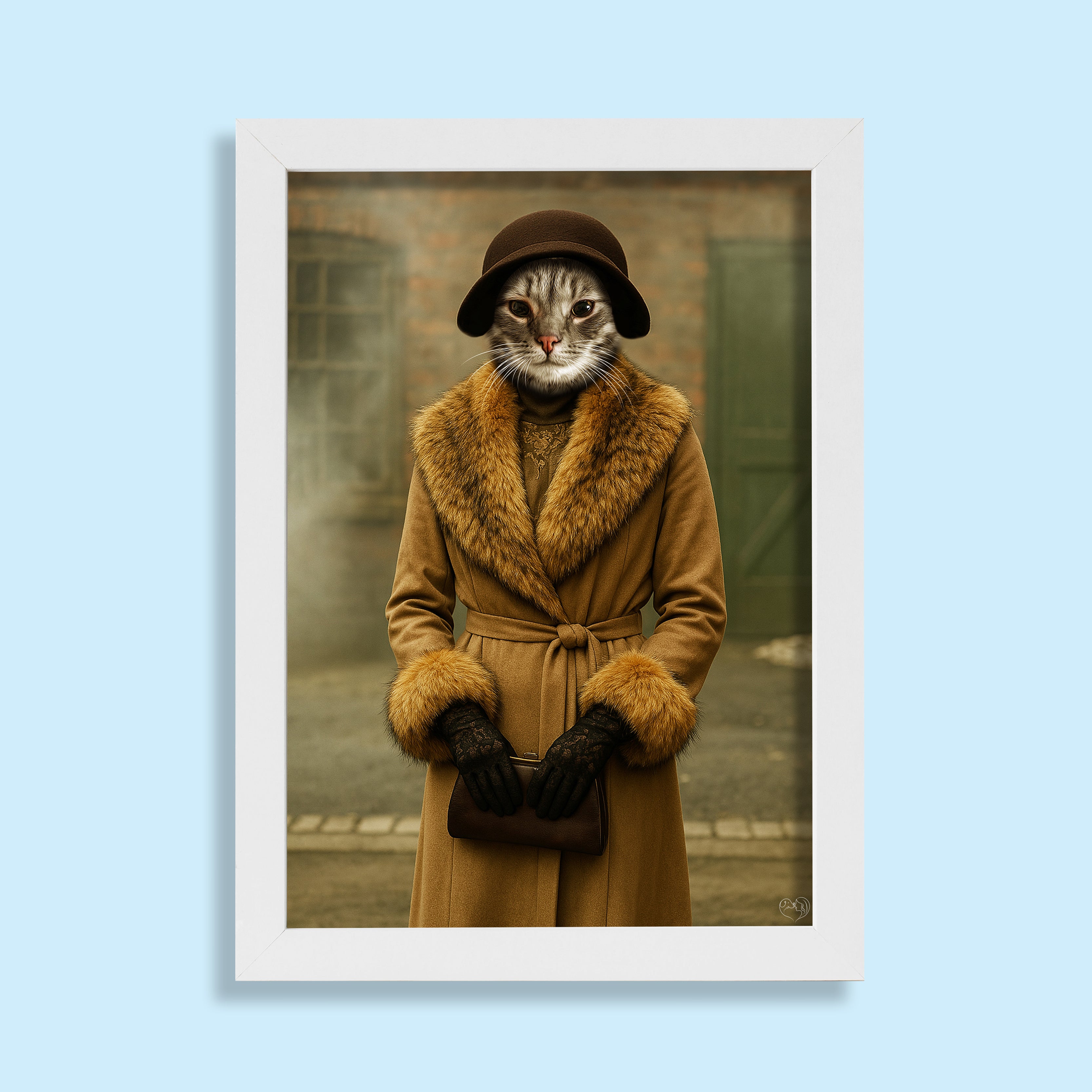 Transform your pet into Ada Shelby with this Peaky Blinders-inspired custom portrait. A stylish, bold tribute for fans and pet lovers alike – made by UK artists.